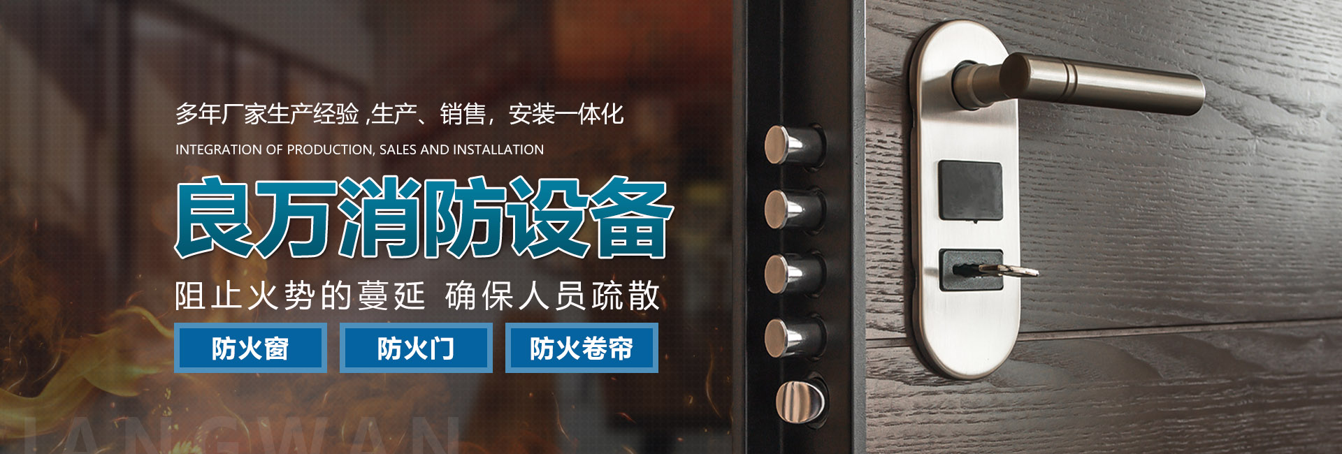 合肥良萬(wàn)消防設(shè)備有限公司位于合肥市包河工業(yè)園,生產(chǎn)銷售安裝:防火門、防火卷簾門、防火窗等消防安全產(chǎn)品。公司具有研發(fā)、設(shè)計(jì)、生產(chǎn)、銷售、及安裝服務(wù)的綜合配套能力。合肥良萬(wàn)消防設(shè)備有限公司技術(shù)力量強(qiáng),設(shè)備齊全,產(chǎn)品不斷創(chuàng)新,以信譽(yù)立業(yè),客戶滿意是我們永無(wú)止境的追求。我們?cè)诒WC產(chǎn)品質(zhì)量的同時(shí),也十分注重售后服務(wù),保證消防安全產(chǎn)品的正常運(yùn)行。公司始終堅(jiān)持誠(chéng)信為本的企業(yè)宗旨,真誠(chéng)希望與社會(huì)各界新老客戶精誠(chéng)合作,良萬(wàn)愿與您攜手共創(chuàng)輝煌!
